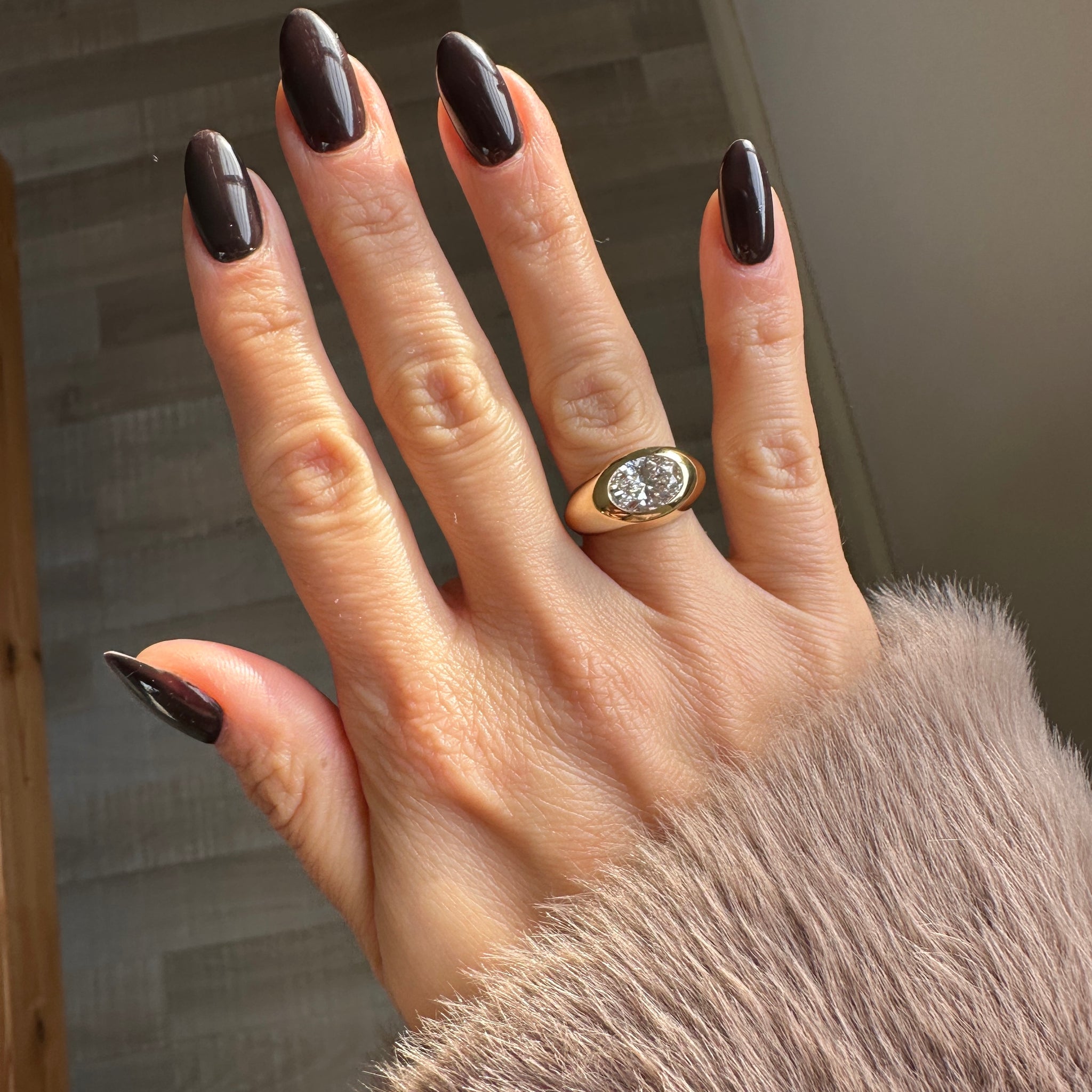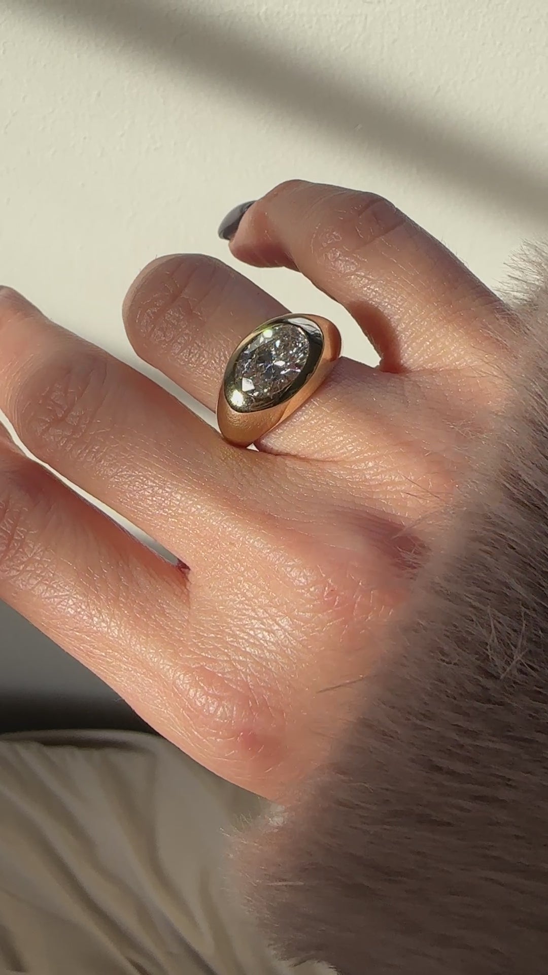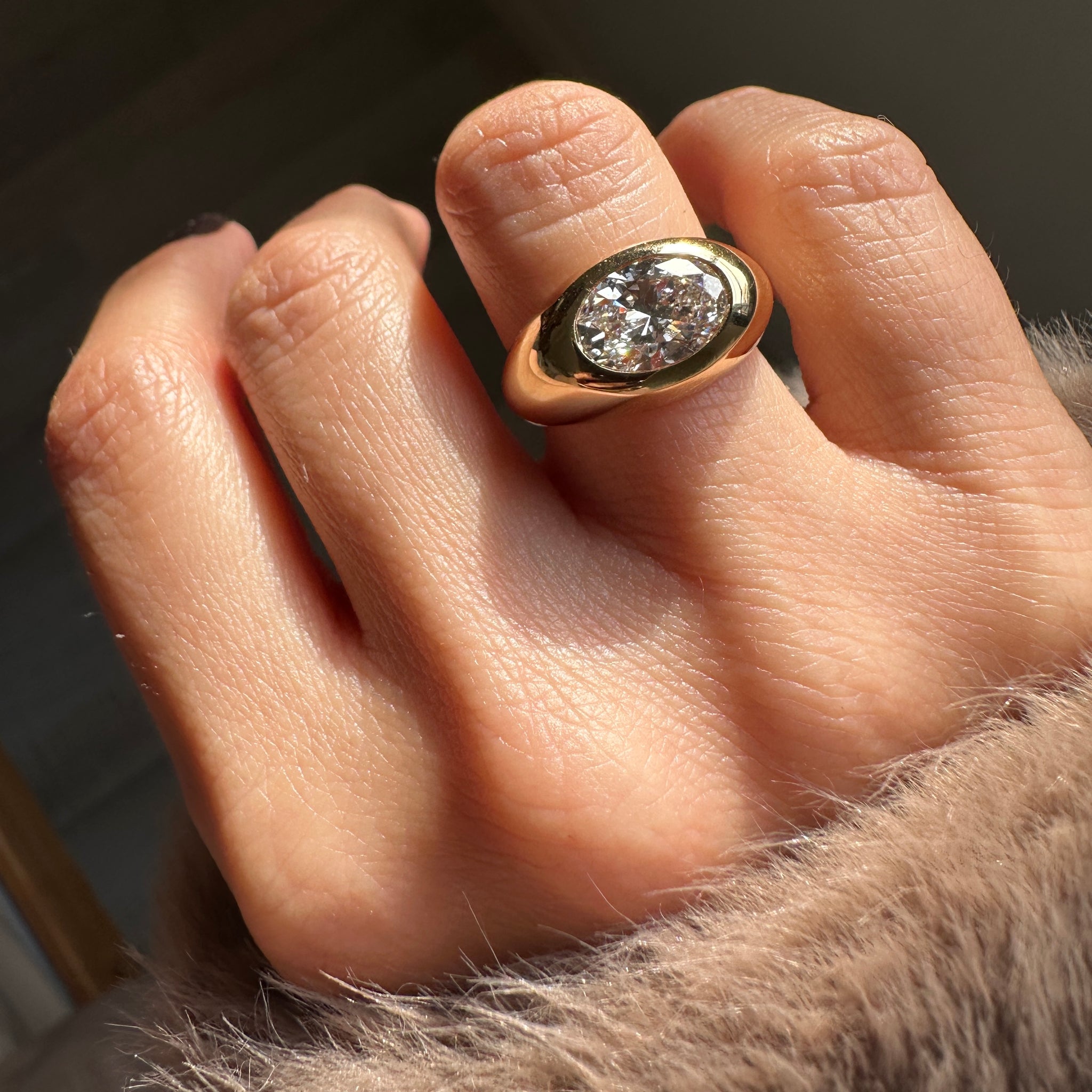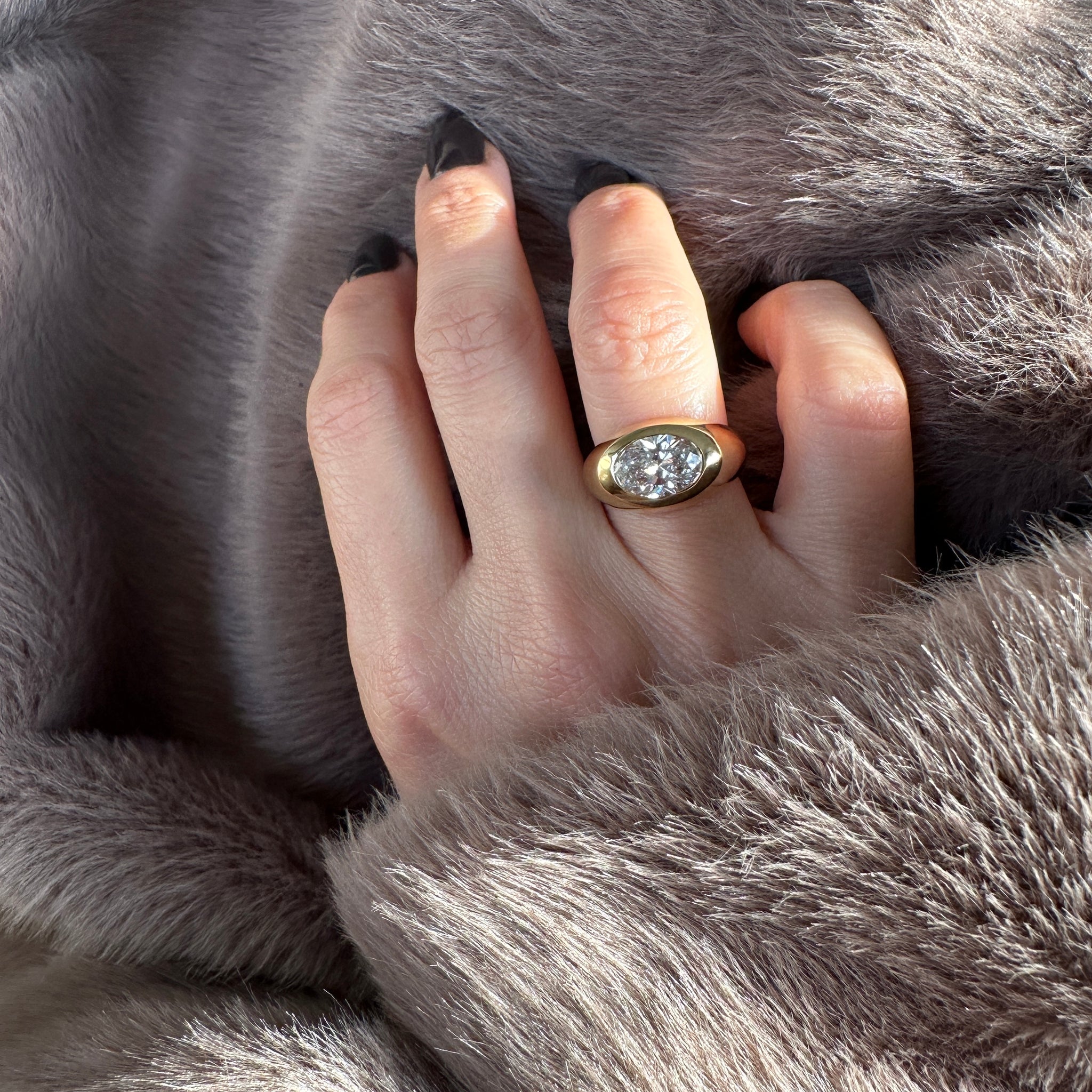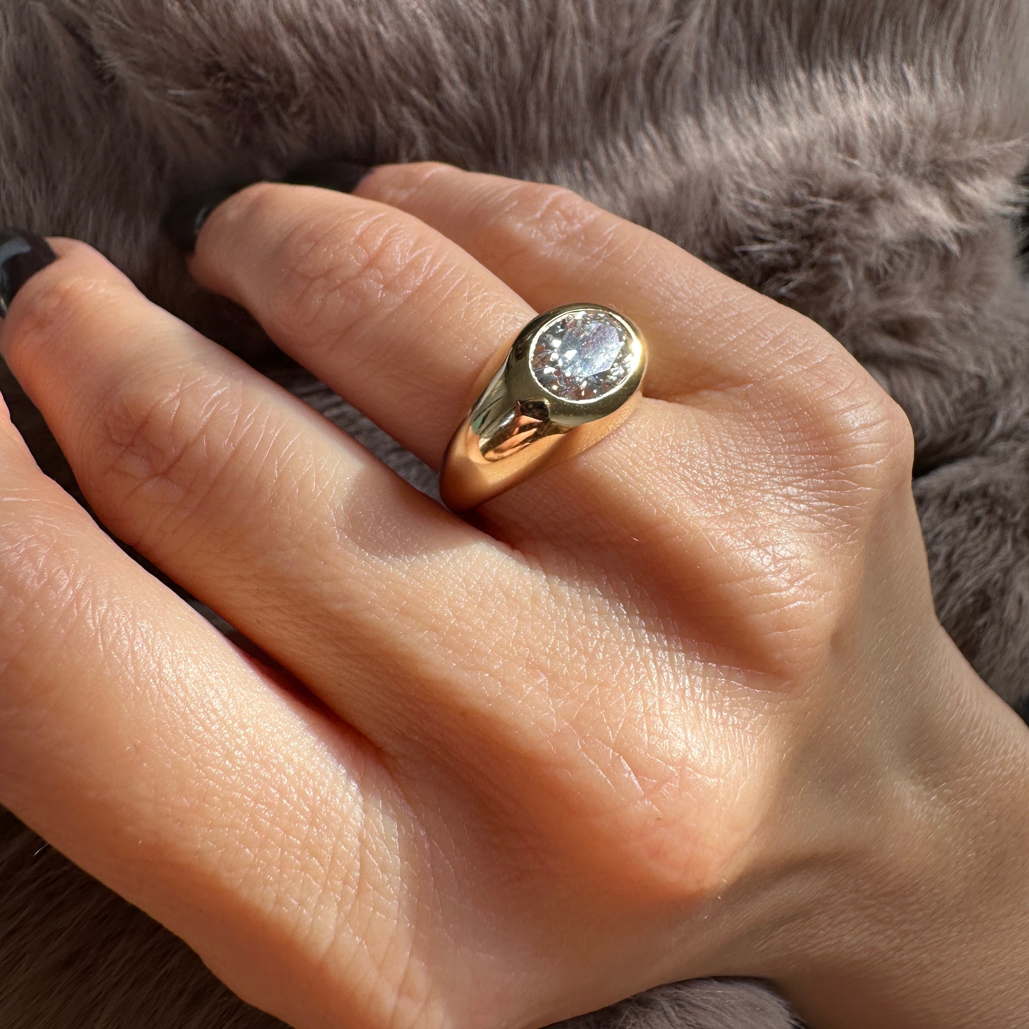 A bold and beautiful 18K gold ring, set with a dazzling 2-carat oval diamond.